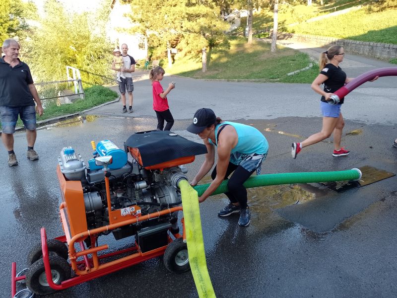29. 8. trénink dámského družstva u hasičárny, kde byla tradičně dvě tréninková stanoviště. Jedno je na potrénování spojů hadic a druhé na trénink "zadku" s vodou. Na obou stanovištích to našim ženám šlo pěkně od ruky.